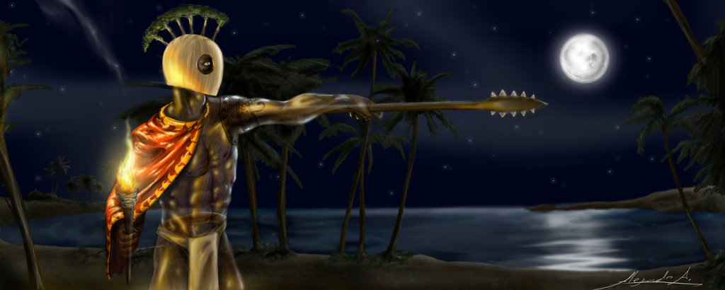 “The first thing you will hear is drums in the distance, then you will smell a foul and musky odor, and you will hear a conch shell being blown as fair warning to get out of the way.  You will see torches getting brighter and brighter as they get closer.  Your best chance is to have an ancestor that recognizes you as they will call out Na’u!, which means mine!  And if you are in the night marchers’ bloodline no one in the procession can harm you.  No matter what you build in their path they go straight through it.  The night marchers are the vanguard for sacred chiefs or chiefesses who have a high station in life.” – Po Kane. Haunted Hawaiian Nights, by Lopaka Kapanui